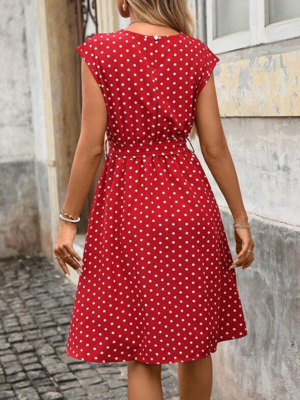 Rochie Scurta Celia Rosie cu Buline Albe