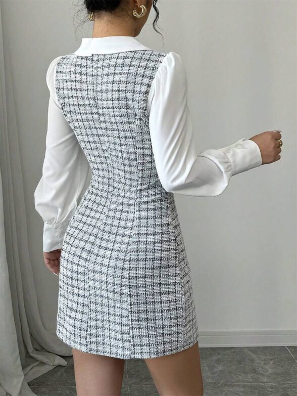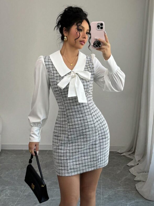 Compleu cu Rochie Midi Karina Negru cu Alb