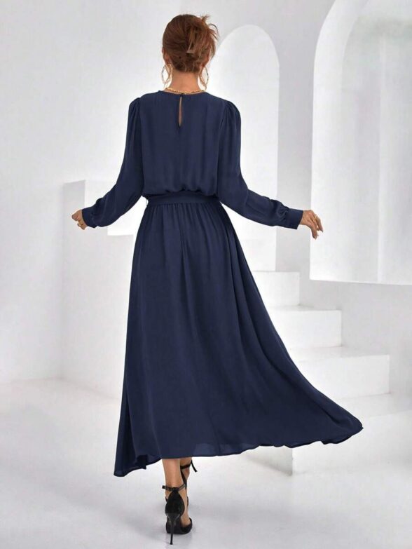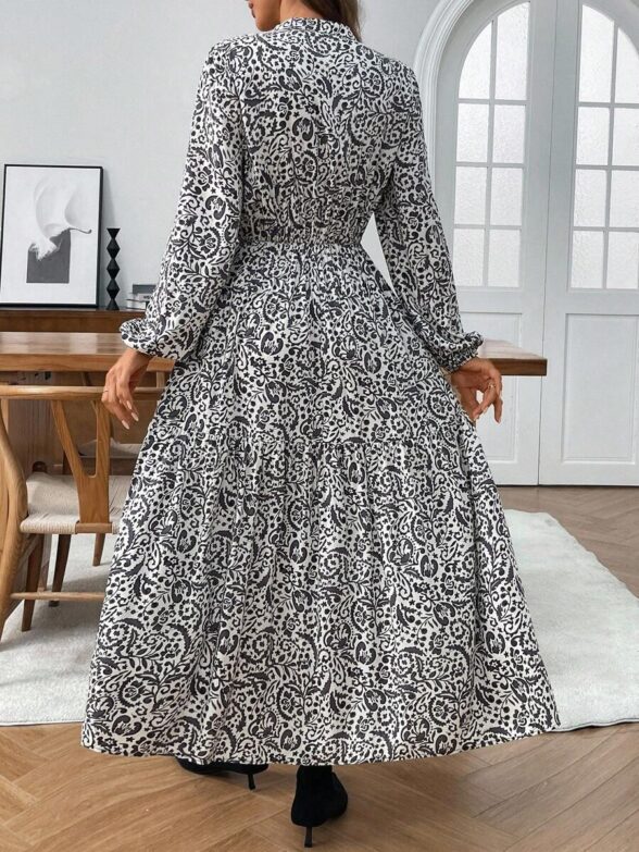 Rochie Lunga Vincent Albastra Cu Imprimeu Geometric Negru