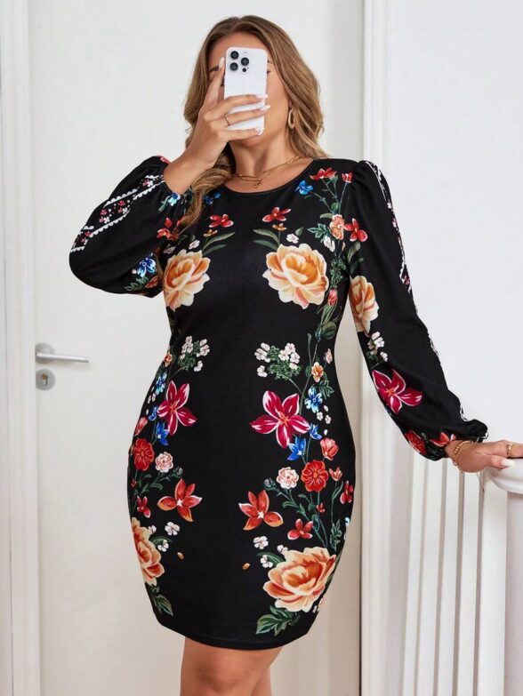 Rochie Midi Flavia Neagra Inflorata – Marimi Mari