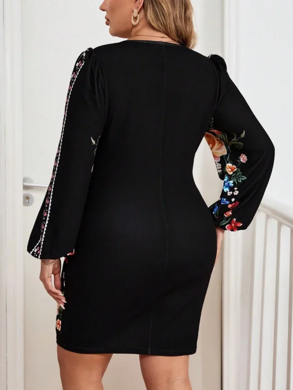 Rochie Scurta Doria Neagra cu Print Floral – Marimi Mari