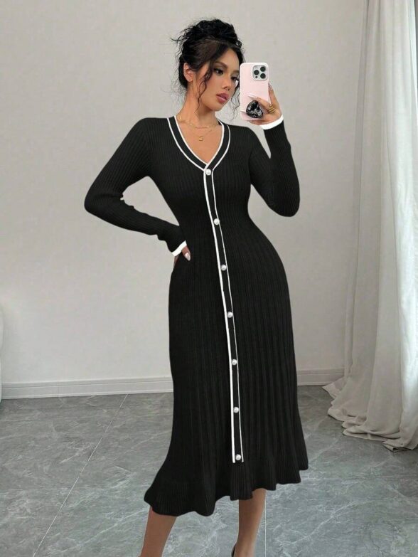 Rochie Midi Tricotata Selena Neagra
