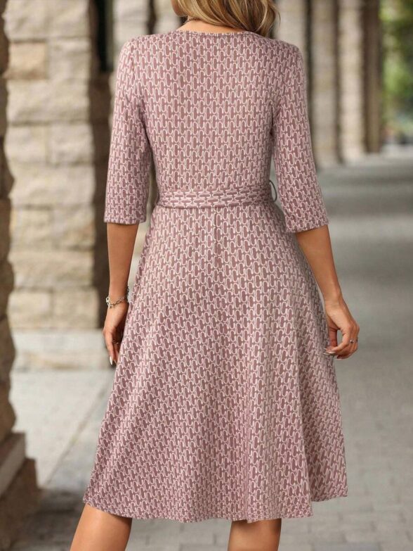 Rochie Scurta Troya Roz cu Print Geometric Alb