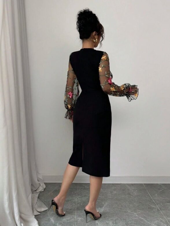 Rochie Scurta Marimar Neagra Cu Model Floral