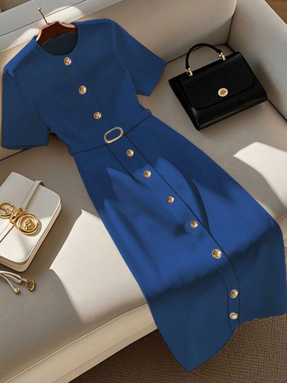 Rochie Scurta Mariana Albastra Cu Cordon Din Catifea
