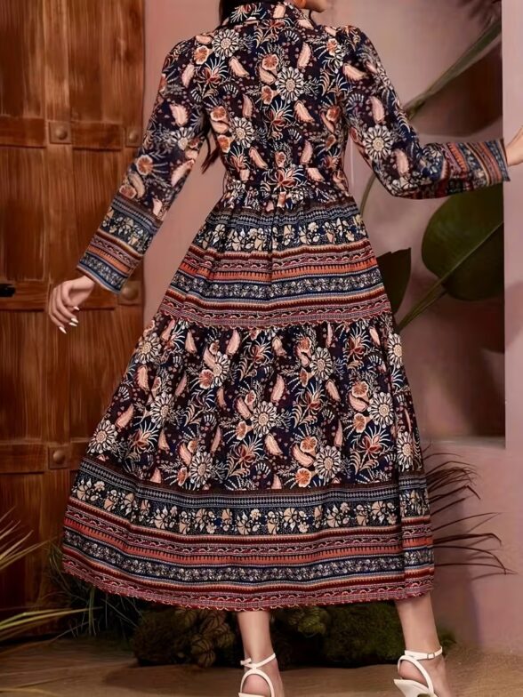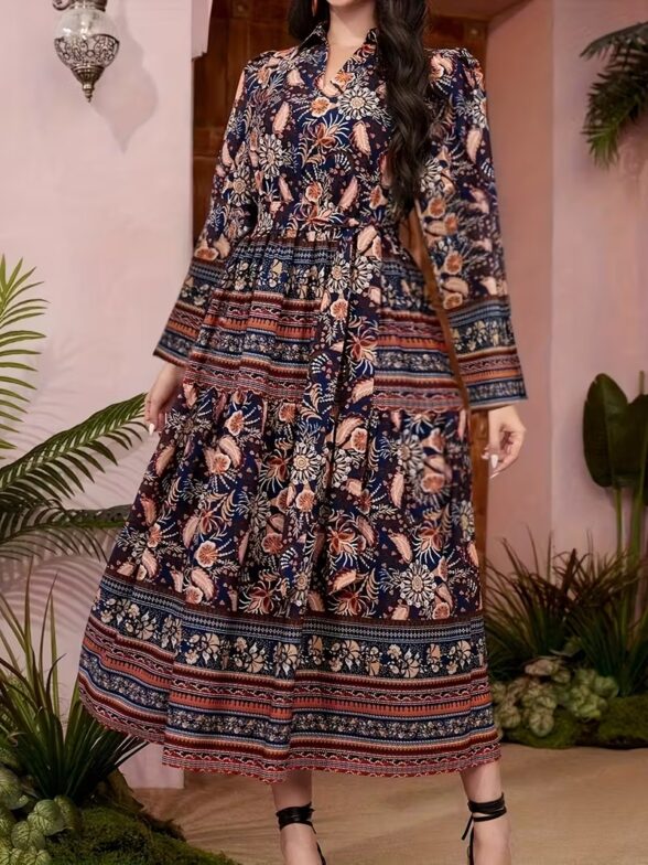 Rochie Lunga Marada Bleumarin cu Print Floral Maro
