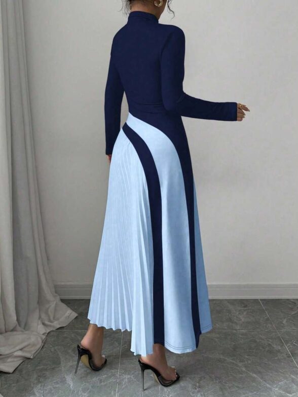 Rochie Lunga Miriam Bleumarin cu Bleu Plisata
