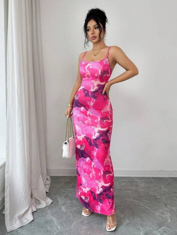 Rochie Lunga Annissa Alba cu Print Floral Roz