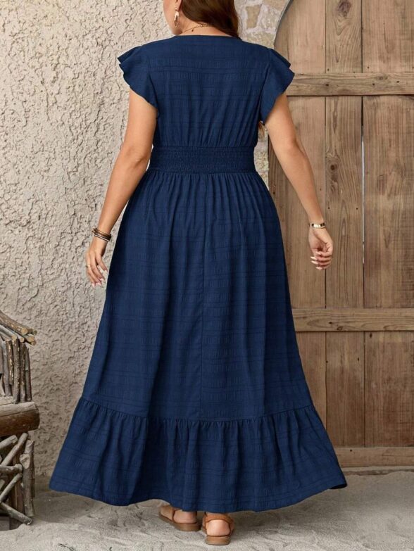 Rochie Lunga Mairin Albastra Cu Nasturi