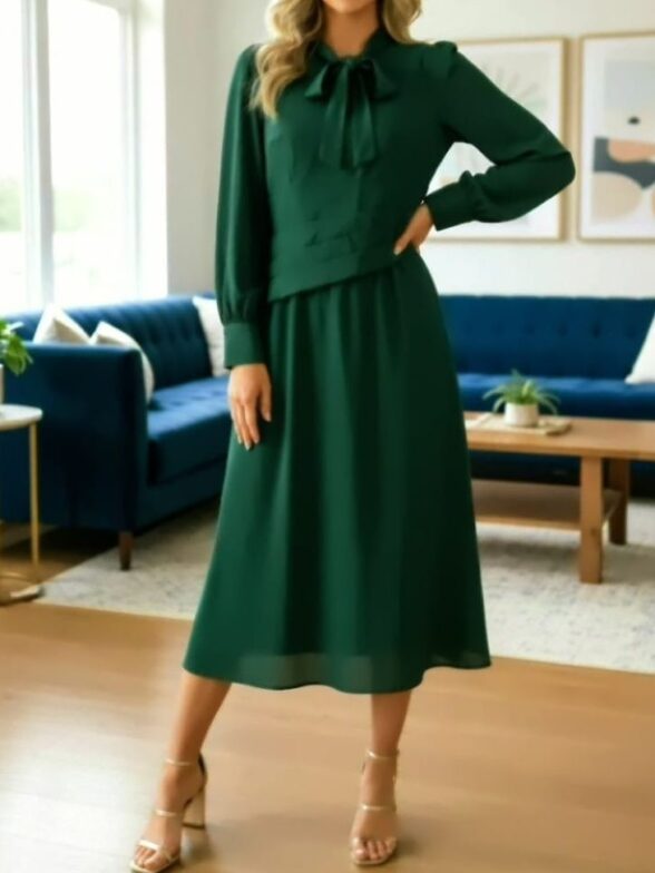 Rochie Midi Haldor Verde Plisata