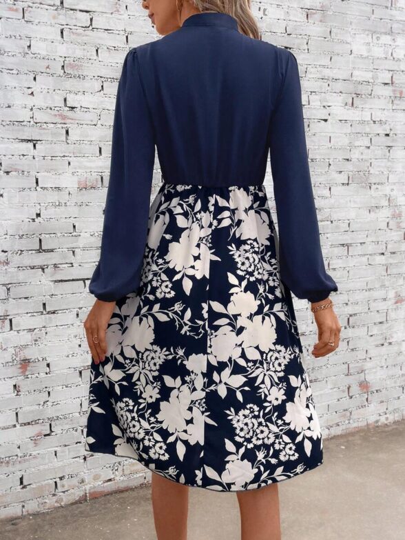 Rochie Scurta Shiro Bleumarin cu Print Floral Crem