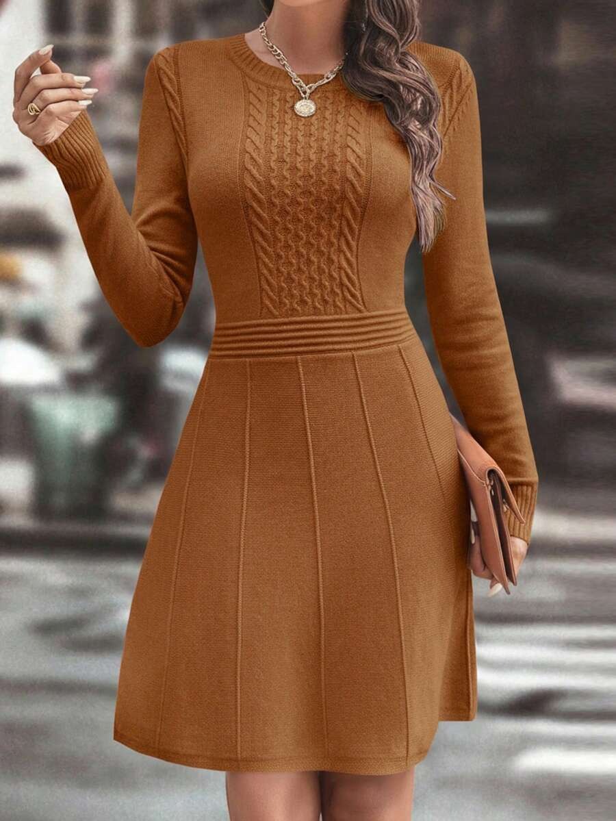 Rochie Midi Tricotata Syria in 2 culori Portocaliu cu Maro