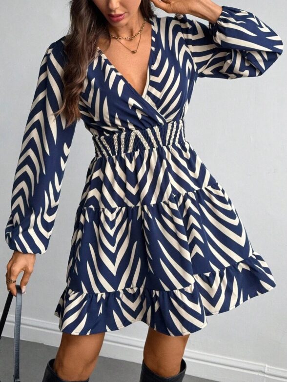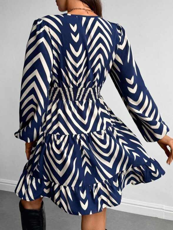 Rochie Scurta Doriana Bleumarin cu Print Geometric Alb
