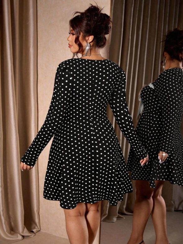 Rochie Scurta Ruana Neagra cu Buline Albe – Marimi Mari