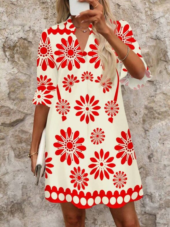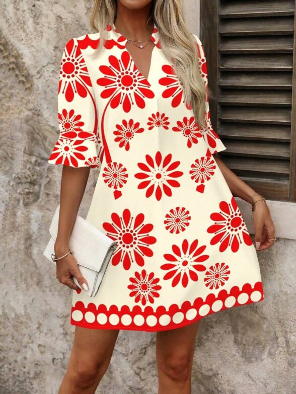 Rochie Scurta Eline Grena cu Print Floral