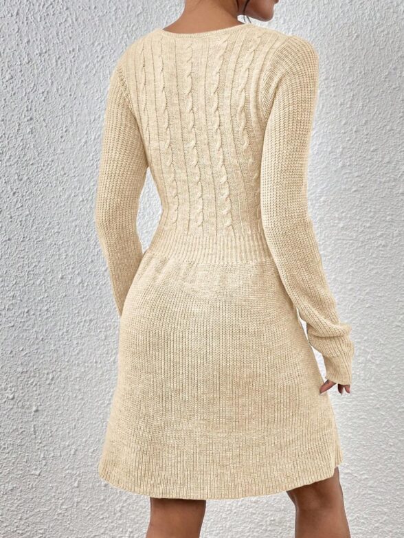 Compleu Tricotat cu Rochie Scurta Sorana Crem