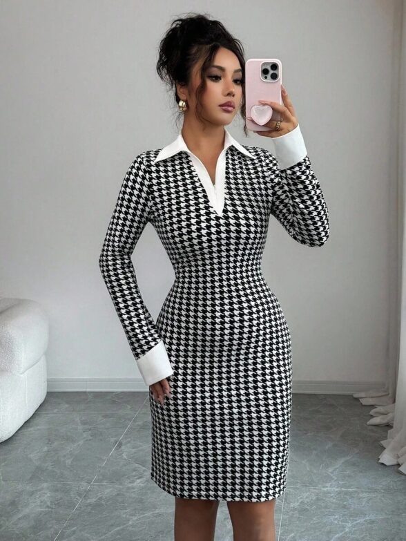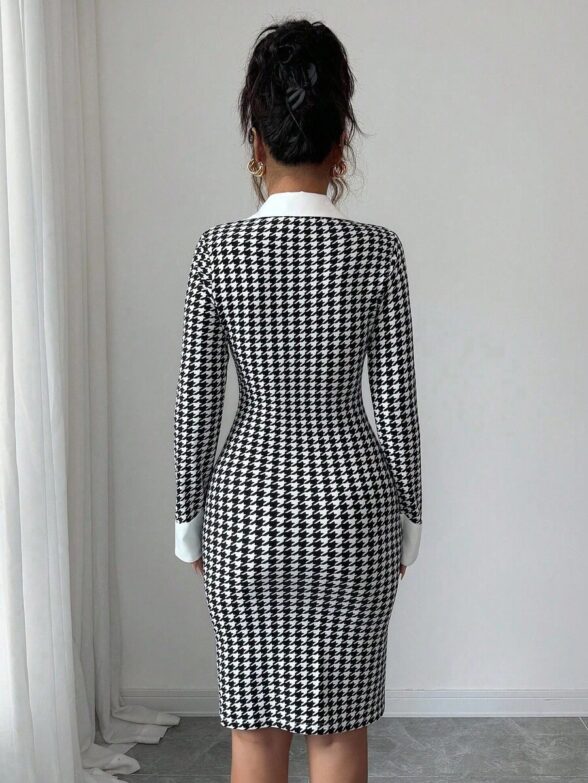 Rochie Scurta Adelaide Neagra cu Print Geometric Alb