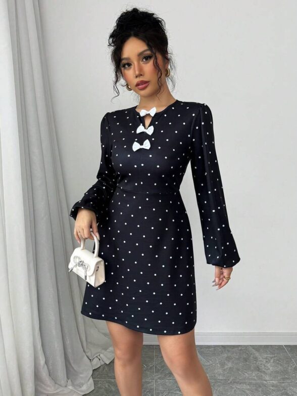 Rochie Scurta Rebeca Neagra cu Buline Albe
