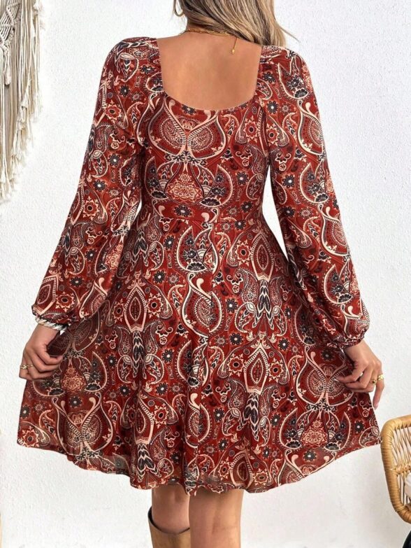 Rochie Midi Lorina Neagra cu Print Crem