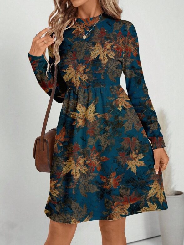 Rochie Scurta Didra Albastra cu Frunze