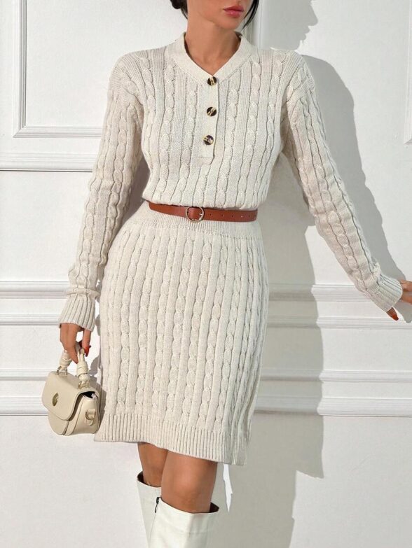 Rochie Tricotata Scurta Otilia Crem Deschis