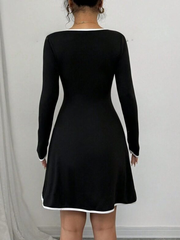 Compleu cu Rochie Scurta Eldora Alb cu Negru