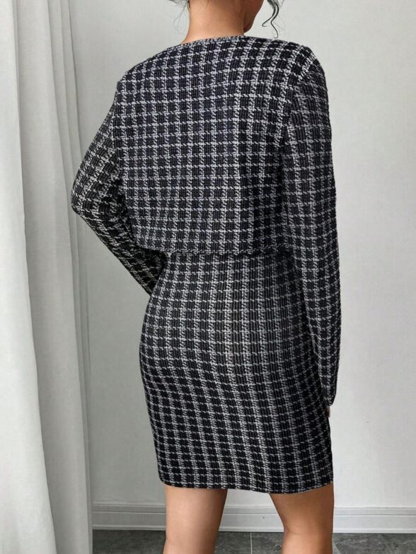 Compleu cu Rochie Scurta Eldora Alb cu Negru