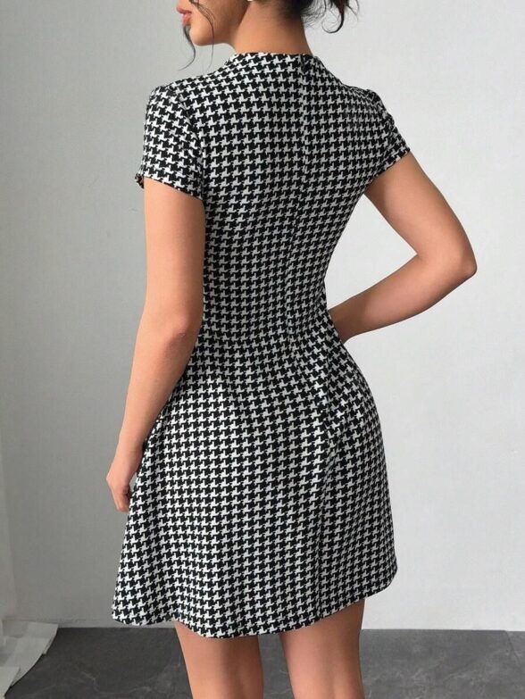 Rochie Scurta Sella Alba cu Print Geometric Negru
