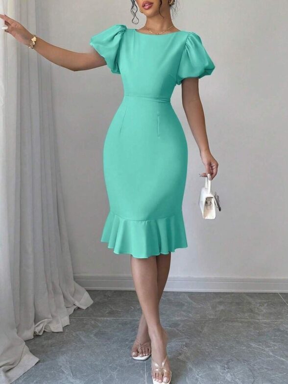 Rochie Scurta Serisi Bleu cu maneci Albe