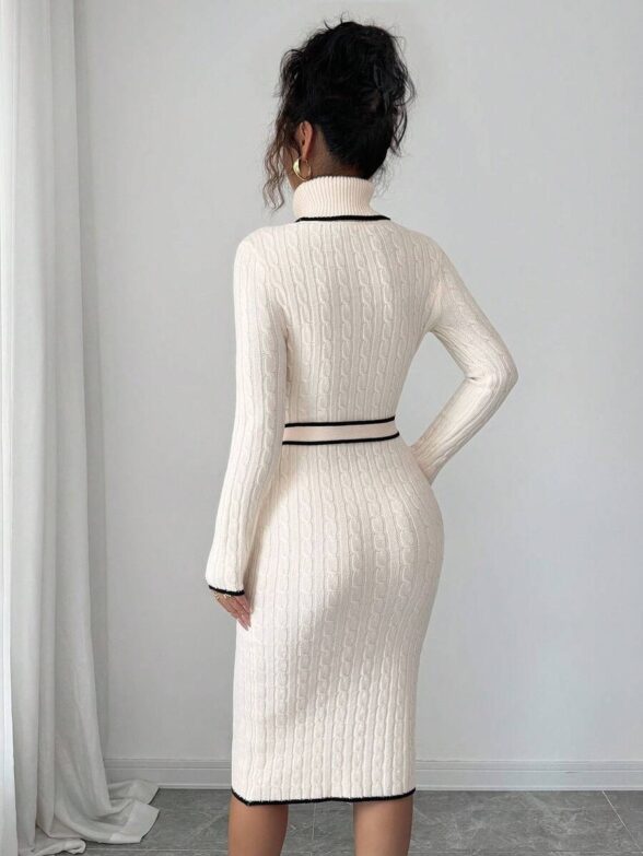 Rochie Midi Tricotata Teodora Crem cu Perle