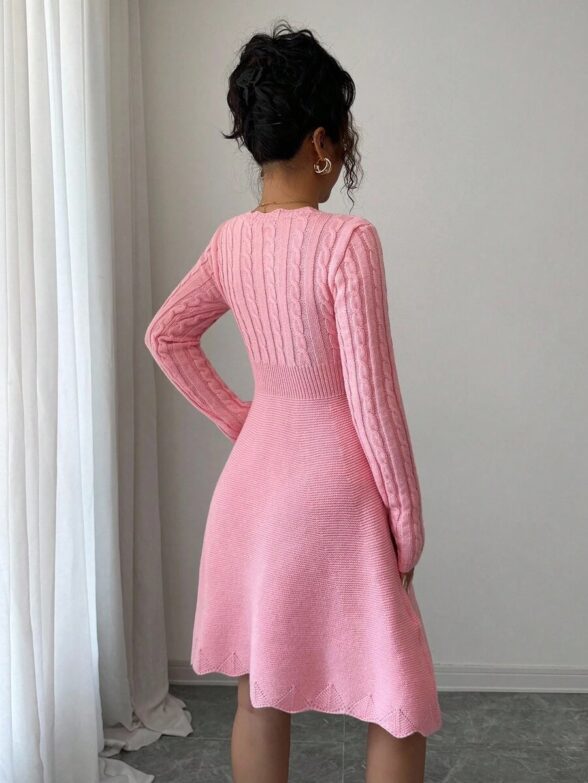 Rochie Scurta Tricotata Vivianna Roz Inchis