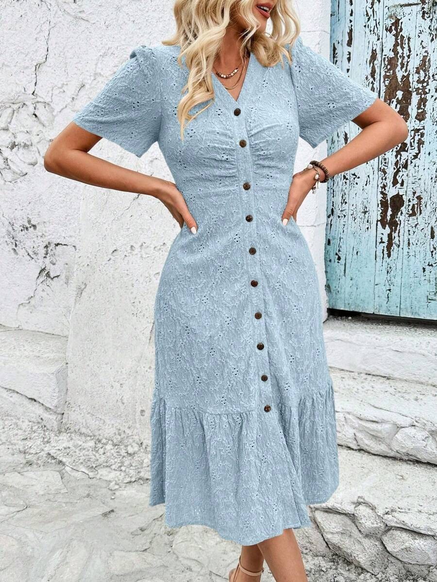 Salopeta Lunga Dinna Alba cu Print Floral Albastru