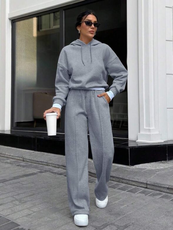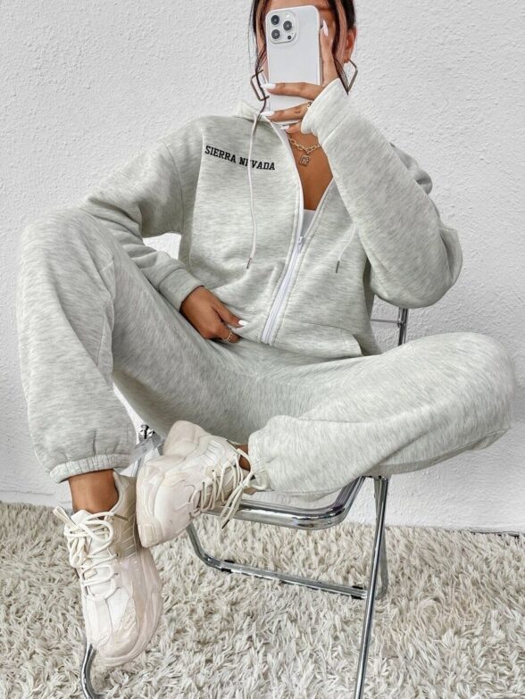 Trening Dama din Bumbac Lotus Gri – Marimi Mari