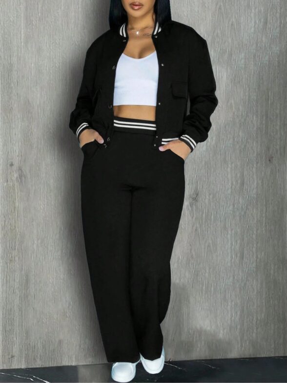 Trening format din bluza cu fermoar si pantalon Didra Negru cu Dungi Albe