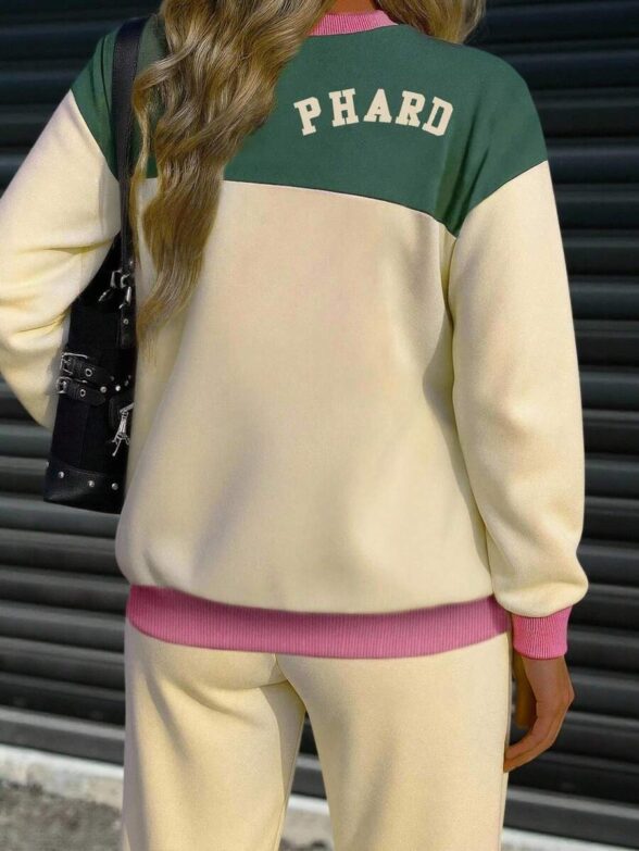 Trening Anastasia Verde Format Din Pantalon Si Bluza Cu Scris La Spate