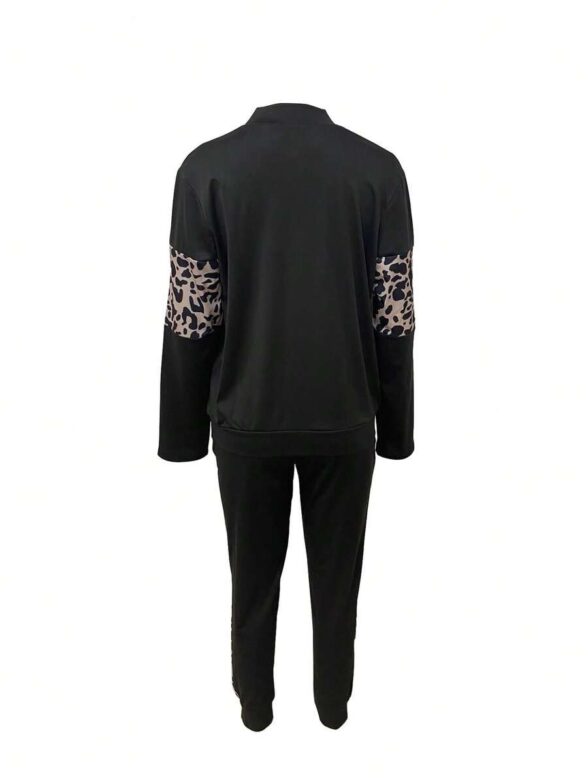 Compleu cu Pantalon Alessia Negru cu Print Leopard