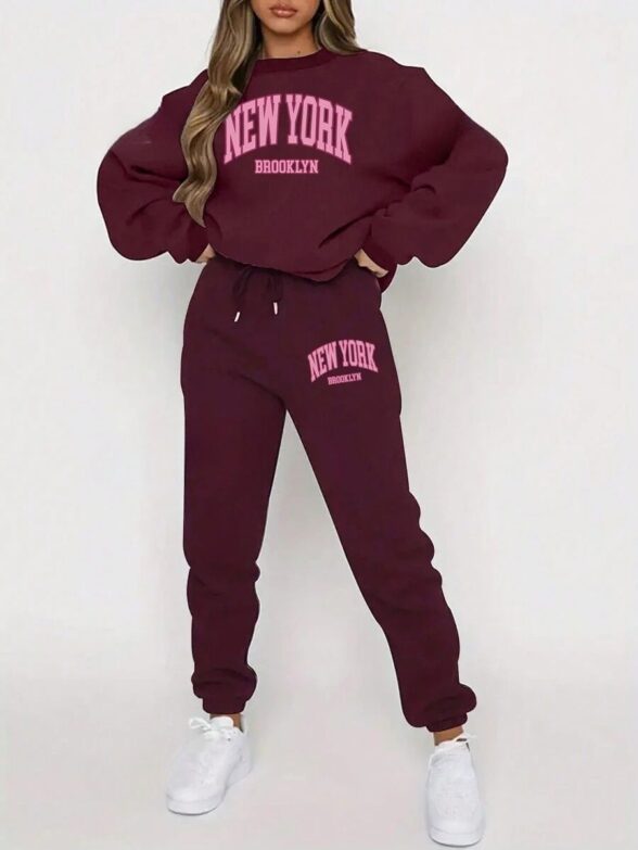 Trening Elsie Format Din Pantalon Maro Si Bluza Crem