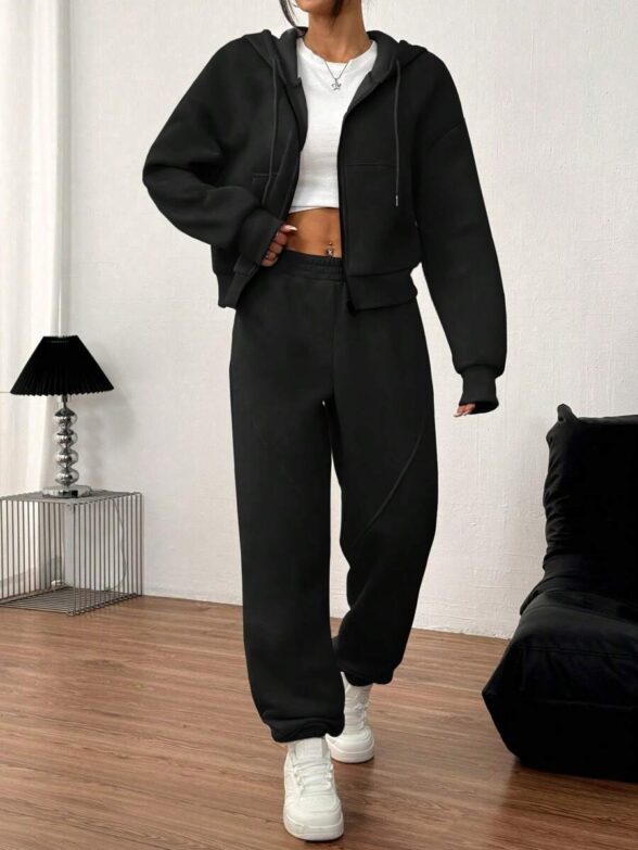 Trening Faith Roz Format Din Pantalon Si Bluza Cu Fermoar Si Gluga