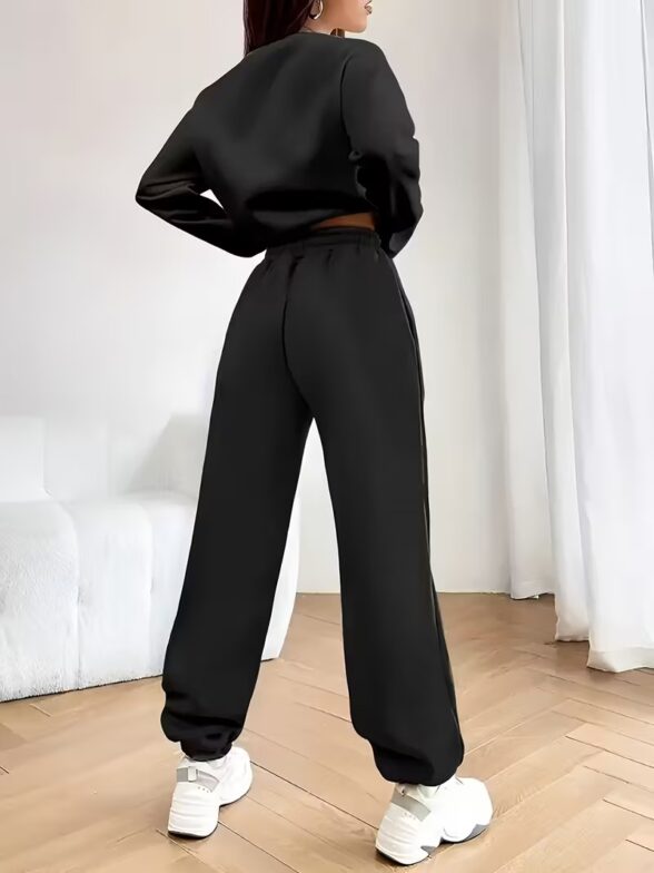 Trening Elsie Format Din Pantalon Maro Si Bluza Crem