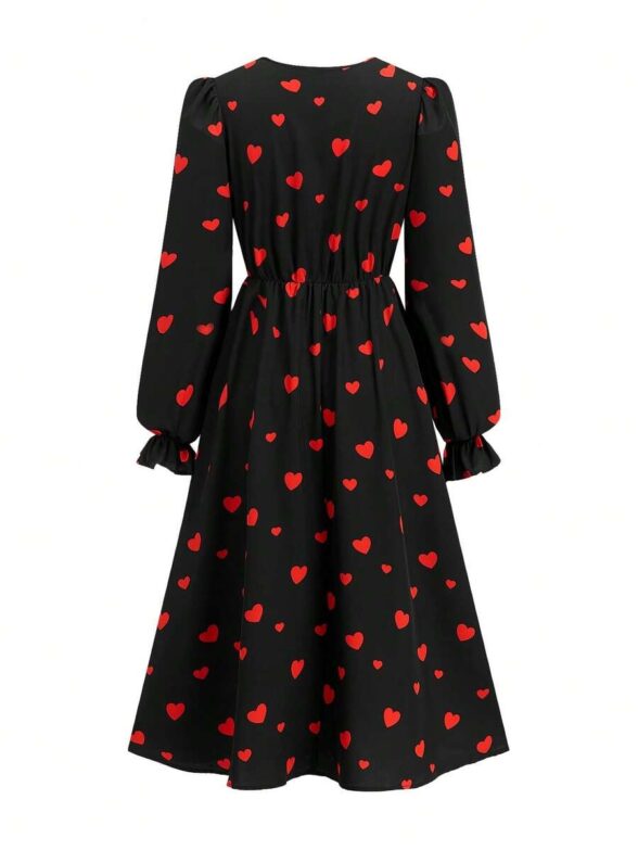 Rochie Midi Adalina Neagra cu Inimi Rosii
