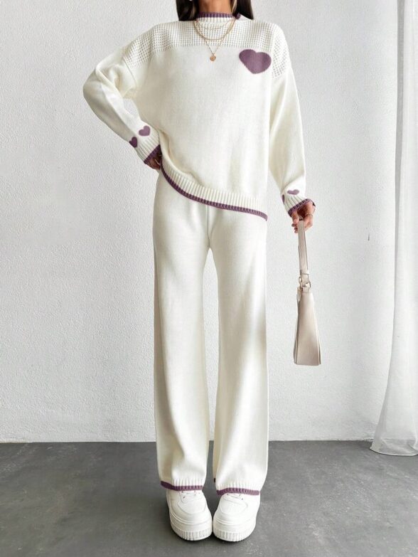 Compleu Tricotat cu Pantalon Adela Alb