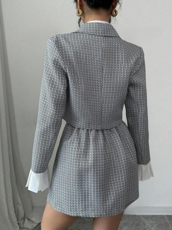 Compleu cu Fusta Scurta Miriam Alb cu Negru ( fara camasa )