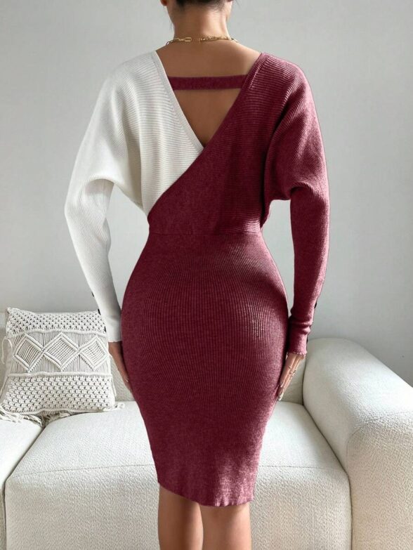 Rochie Tricotata Scurta Alessia Grena cu Alb