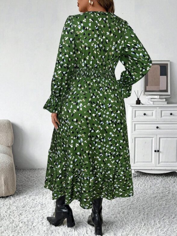 Rochie Midi Aletha Verde cu Print Alb si Negru – Marimi Mari