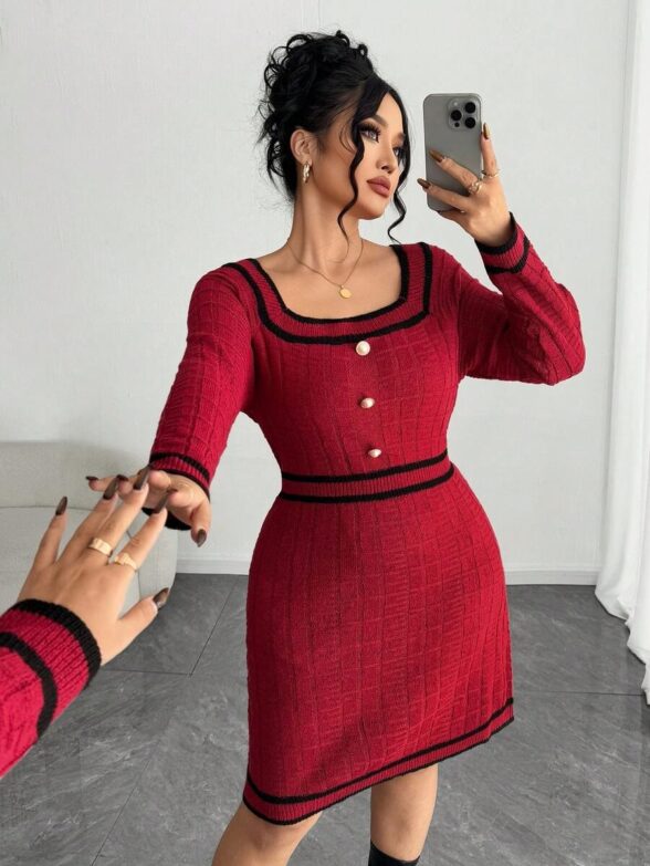 Rochie Scurta Tricotata Amarya Rosie – Marimi Mari