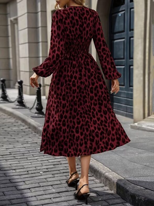 Rochie Midi Xenia Grena cu Animal Print Negru