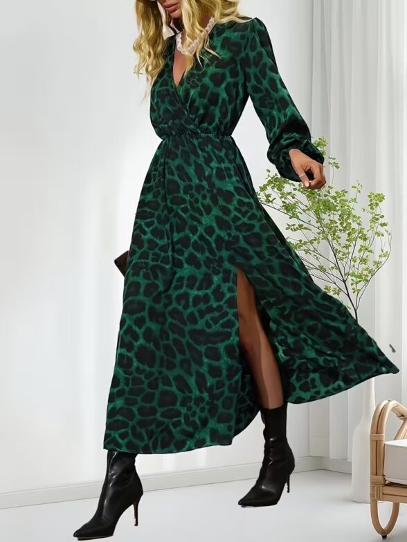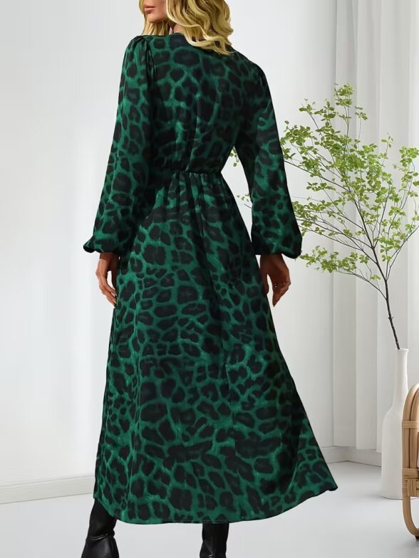 Rochie Lunga Maida Verde cu Animal Print