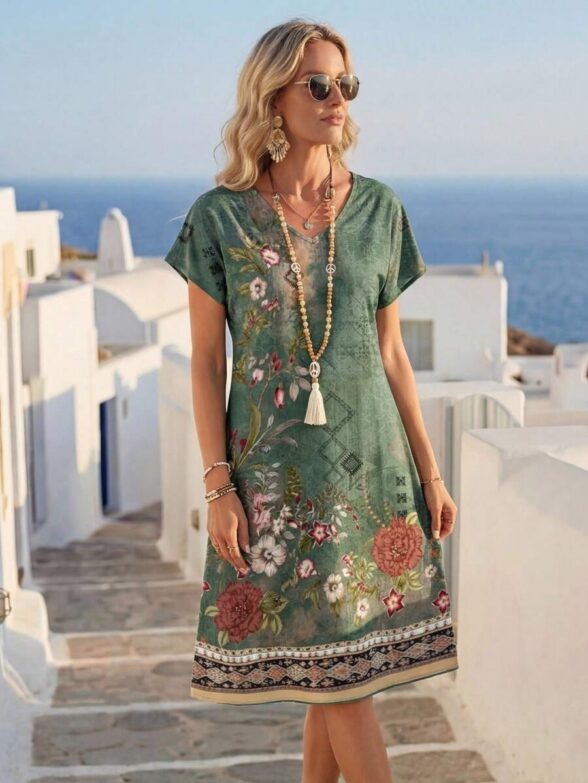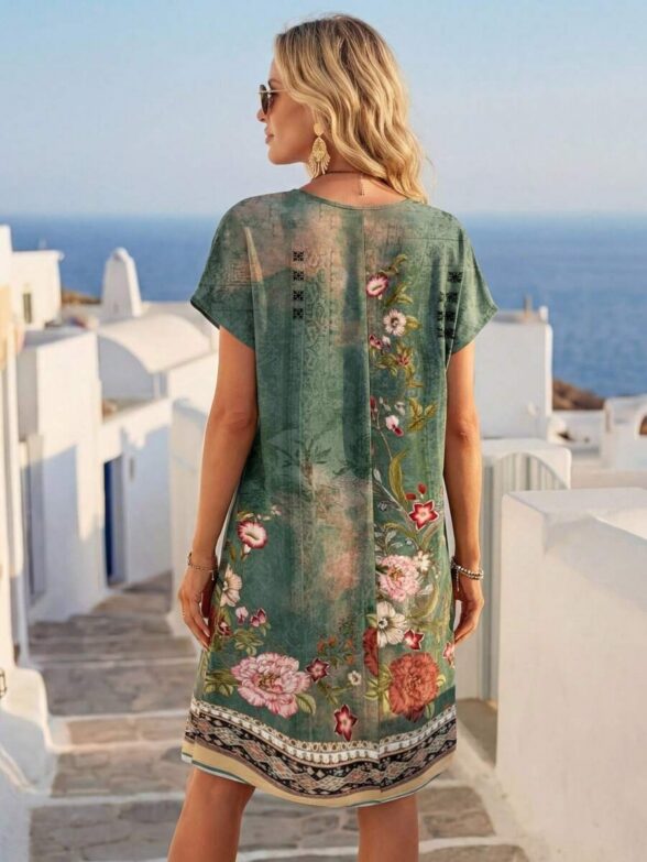 Rochie Scurta Annabelle Verde cu Print Multicolor
