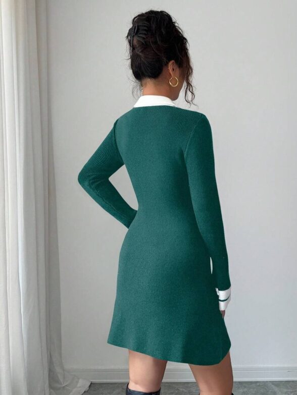 Rochie Midi Tricotata Antonina Verde cu Guler