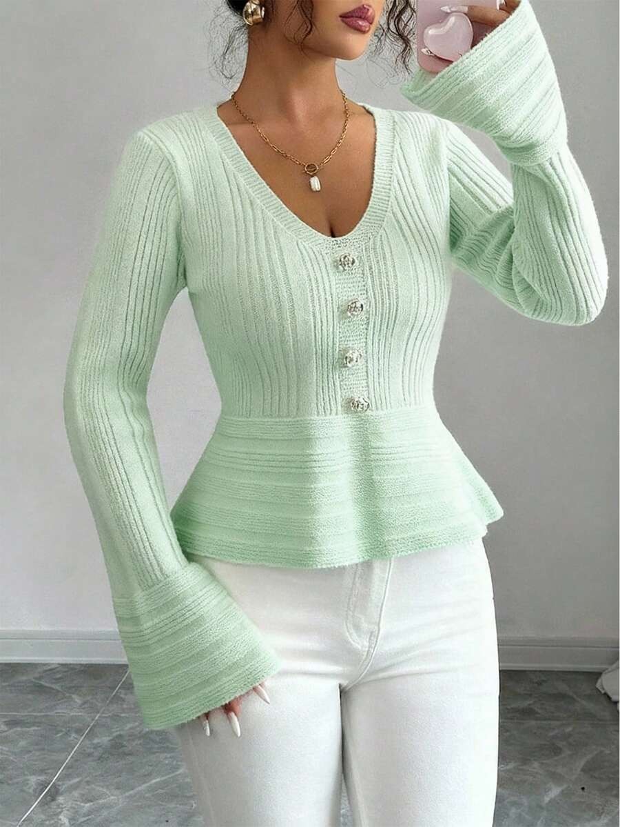 Compleu Tricotat cu Pantalon Arianna Verde